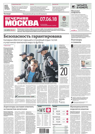 «Вечерняя Москва» — ежедневная российская вечерняя газета, старейшее из вечерних изданий в России, учрежденное в 1923 году. Выходит пять дней в неделю, кроме субботы и воскресенья. Отличается тем, что рассказывает о событиях еще не завершившегося дня. Оперативно освещает хронику и особенности жизни Москвы, охватывает все слои общества и большинство профессиональных и возрастных групп читателей.Издание представлено тремя выпусками – утренним ежедневным, вечерним (выходит три раза в неделю), еженедельным (выходит по четвергам).