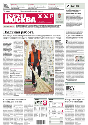 «Вечерняя Москва» — ежедневная российская вечерняя газета, старейшее из вечерних изданий в России, учрежденное в 1923 году. Выходит пять дней в неделю, кроме субботы и воскресенья. Отличается тем, что рассказывает о событиях еще не завершившегося дня. Оперативно освещает хронику и особенности жизни Москвы, охватывает все слои общества и большинство профессиональных и возрастных групп читателей.Издание представлено тремя выпусками – утренним ежедневным, вечерним (выходит три раза в неделю), еженедельным (выходит по четвергам).