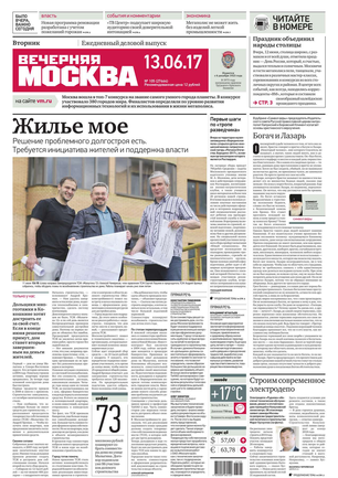 «Вечерняя Москва» — ежедневная российская вечерняя газета, старейшее из вечерних изданий в России, учрежденное в 1923 году. Выходит пять дней в неделю, кроме субботы и воскресенья. Отличается тем, что рассказывает о событиях еще не завершившегося дня. Оперативно освещает хронику и особенности жизни Москвы, охватывает все слои общества и большинство профессиональных и возрастных групп читателей.Издание представлено тремя выпусками – утренним ежедневным, вечерним (выходит три раза в неделю), еженедельным (выходит по четвергам).