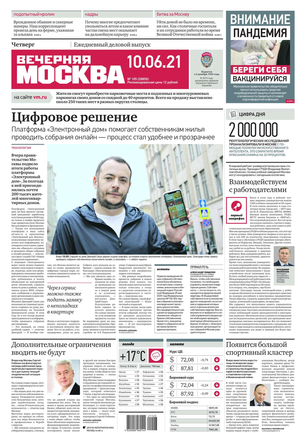 «Вечерняя Москва» — ежедневная российская вечерняя газета, старейшее из вечерних изданий в России, учрежденное в 1923 году. Выходит пять дней в неделю, кроме субботы и воскресенья. Отличается тем, что рассказывает о событиях еще не завершившегося дня. Оперативно освещает хронику и особенности жизни Москвы, охватывает все слои общества и большинство профессиональных и возрастных групп читателей.Издание представлено тремя выпусками – утренним ежедневным, вечерним (выходит три раза в неделю), еженедельным (выходит по четвергам).