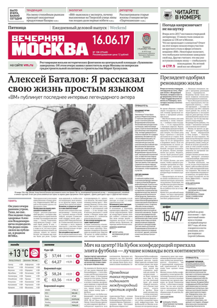 «Вечерняя Москва» — ежедневная российская вечерняя газета, старейшее из вечерних изданий в России, учрежденное в 1923 году. Выходит пять дней в неделю, кроме субботы и воскресенья. Отличается тем, что рассказывает о событиях еще не завершившегося дня. Оперативно освещает хронику и особенности жизни Москвы, охватывает все слои общества и большинство профессиональных и возрастных групп читателей.Издание представлено тремя выпусками – утренним ежедневным, вечерним (выходит три раза в неделю), еженедельным (выходит по четвергам).