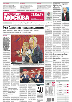 «Вечерняя Москва» — ежедневная российская вечерняя газета, старейшее из вечерних изданий в России, учрежденное в 1923 году. Выходит пять дней в неделю, кроме субботы и воскресенья. Отличается тем, что рассказывает о событиях еще не завершившегося дня. Оперативно освещает хронику и особенности жизни Москвы, охватывает все слои общества и большинство профессиональных и возрастных групп читателей.Издание представлено тремя выпусками – утренним ежедневным, вечерним (выходит три раза в неделю), еженедельным (выходит по четвергам).