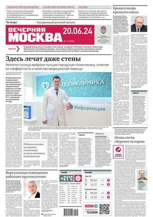 «Вечерняя Москва» — ежедневная российская вечерняя газета, старейшее из вечерних изданий в России, учрежденное в 1923 году. Выходит пять дней в неделю, кроме субботы и воскресенья. Отличается тем, что рассказывает о событиях еще не завершившегося дня. Оперативно освещает хронику и особенности жизни Москвы, охватывает все слои общества и большинство профессиональных и возрастных групп читателей.Издание представлено тремя выпусками – утренним ежедневным, вечерним (выходит три раза в неделю), еженедельным (выходит по четвергам).