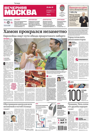 «Вечерняя Москва» — ежедневная российская вечерняя газета, старейшее из вечерних изданий в России, учрежденное в 1923 году. Выходит пять дней в неделю, кроме субботы и воскресенья. Отличается тем, что рассказывает о событиях еще не завершившегося дня. Оперативно освещает хронику и особенности жизни Москвы, охватывает все слои общества и большинство профессиональных и возрастных групп читателей.Издание представлено тремя выпусками – утренним ежедневным, вечерним (выходит три раза в неделю), еженедельным (выходит по четвергам).