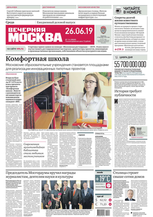 «Вечерняя Москва» — ежедневная российская вечерняя газета, старейшее из вечерних изданий в России, учрежденное в 1923 году. Выходит пять дней в неделю, кроме субботы и воскресенья. Отличается тем, что рассказывает о событиях еще не завершившегося дня. Оперативно освещает хронику и особенности жизни Москвы, охватывает все слои общества и большинство профессиональных и возрастных групп читателей.Издание представлено тремя выпусками – утренним ежедневным, вечерним (выходит три раза в неделю), еженедельным (выходит по четвергам).