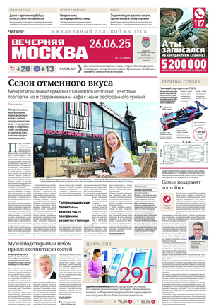 «Вечерняя Москва» — ежедневная российская вечерняя газета, старейшее из вечерних изданий в России, учрежденное в 1923 году. Выходит пять дней в неделю, кроме субботы и воскресенья. Отличается тем, что рассказывает о событиях еще не завершившегося дня. Оперативно освещает хронику и особенности жизни Москвы, охватывает все слои общества и большинство профессиональных и возрастных групп читателей.Издание представлено тремя выпусками – утренним ежедневным, вечерним (выходит три раза в неделю), еженедельным (выходит по четвергам).