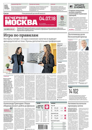 «Вечерняя Москва» — ежедневная российская вечерняя газета, старейшее из вечерних изданий в России, учрежденное в 1923 году. Выходит пять дней в неделю, кроме субботы и воскресенья. Отличается тем, что рассказывает о событиях еще не завершившегося дня. Оперативно освещает хронику и особенности жизни Москвы, охватывает все слои общества и большинство профессиональных и возрастных групп читателей.Издание представлено тремя выпусками – утренним ежедневным, вечерним (выходит три раза в неделю), еженедельным (выходит по четвергам).