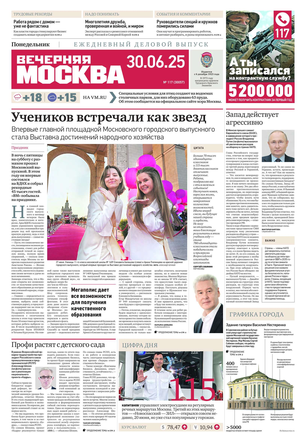«Вечерняя Москва» — ежедневная российская вечерняя газета, старейшее из вечерних изданий в России, учрежденное в 1923 году. Выходит пять дней в неделю, кроме субботы и воскресенья. Отличается тем, что рассказывает о событиях еще не завершившегося дня. Оперативно освещает хронику и особенности жизни Москвы, охватывает все слои общества и большинство профессиональных и возрастных групп читателей.Издание представлено тремя выпусками – утренним ежедневным, вечерним (выходит три раза в неделю), еженедельным (выходит по четвергам).