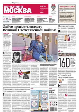 «Вечерняя Москва» — ежедневная российская вечерняя газета, старейшее из вечерних изданий в России, учрежденное в 1923 году. Выходит пять дней в неделю, кроме субботы и воскресенья. Отличается тем, что рассказывает о событиях еще не завершившегося дня. Оперативно освещает хронику и особенности жизни Москвы, охватывает все слои общества и большинство профессиональных и возрастных групп читателей.Издание представлено тремя выпусками – утренним ежедневным, вечерним (выходит три раза в неделю), еженедельным (выходит по четвергам).