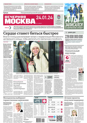 «Вечерняя Москва» — ежедневная российская вечерняя газета, старейшее из вечерних изданий в России, учрежденное в 1923 году. Выходит пять дней в неделю, кроме субботы и воскресенья. Отличается тем, что рассказывает о событиях еще не завершившегося дня. Оперативно освещает хронику и особенности жизни Москвы, охватывает все слои общества и большинство профессиональных и возрастных групп читателей.Издание представлено тремя выпусками – утренним ежедневным, вечерним (выходит три раза в неделю), еженедельным (выходит по четвергам).