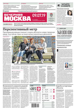 «Вечерняя Москва» — ежедневная российская вечерняя газета, старейшее из вечерних изданий в России, учрежденное в 1923 году. Выходит пять дней в неделю, кроме субботы и воскресенья. Отличается тем, что рассказывает о событиях еще не завершившегося дня. Оперативно освещает хронику и особенности жизни Москвы, охватывает все слои общества и большинство профессиональных и возрастных групп читателей.Издание представлено тремя выпусками – утренним ежедневным, вечерним (выходит три раза в неделю), еженедельным (выходит по четвергам).