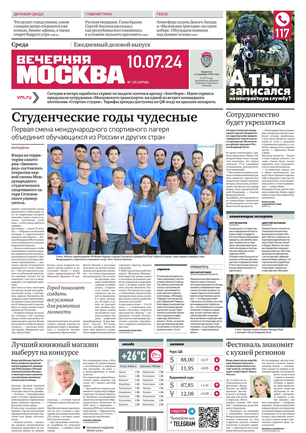 «Вечерняя Москва» — ежедневная российская вечерняя газета, старейшее из вечерних изданий в России, учрежденное в 1923 году. Выходит пять дней в неделю, кроме субботы и воскресенья. Отличается тем, что рассказывает о событиях еще не завершившегося дня. Оперативно освещает хронику и особенности жизни Москвы, охватывает все слои общества и большинство профессиональных и возрастных групп читателей.Издание представлено тремя выпусками – утренним ежедневным, вечерним (выходит три раза в неделю), еженедельным (выходит по четвергам).