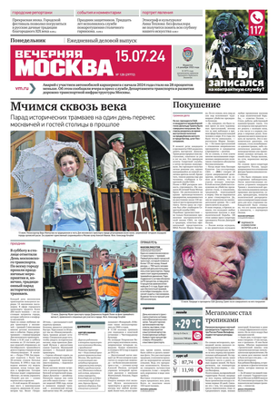 «Вечерняя Москва» — ежедневная российская вечерняя газета, старейшее из вечерних изданий в России, учрежденное в 1923 году. Выходит пять дней в неделю, кроме субботы и воскресенья. Отличается тем, что рассказывает о событиях еще не завершившегося дня. Оперативно освещает хронику и особенности жизни Москвы, охватывает все слои общества и большинство профессиональных и возрастных групп читателей.Издание представлено тремя выпусками – утренним ежедневным, вечерним (выходит три раза в неделю), еженедельным (выходит по четвергам).