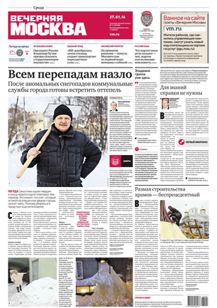 «Вечерняя Москва» — ежедневная российская вечерняя газета, старейшее из вечерних изданий в России, учрежденное в 1923 году. Выходит пять дней в неделю, кроме субботы и воскресенья. Отличается тем, что рассказывает о событиях еще не завершившегося дня. Оперативно освещает хронику и особенности жизни Москвы, охватывает все слои общества и большинство профессиональных и возрастных групп читателей.Издание представлено тремя выпусками – утренним ежедневным, вечерним (выходит три раза в неделю), еженедельным (выходит по четвергам).