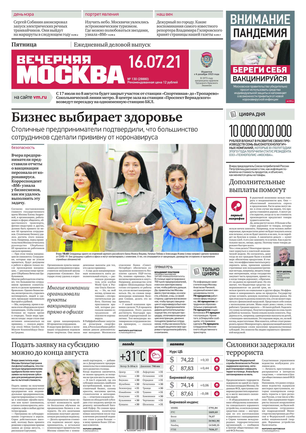 «Вечерняя Москва» — ежедневная российская вечерняя газета, старейшее из вечерних изданий в России, учрежденное в 1923 году. Выходит пять дней в неделю, кроме субботы и воскресенья. Отличается тем, что рассказывает о событиях еще не завершившегося дня. Оперативно освещает хронику и особенности жизни Москвы, охватывает все слои общества и большинство профессиональных и возрастных групп читателей.Издание представлено тремя выпусками – утренним ежедневным, вечерним (выходит три раза в неделю), еженедельным (выходит по четвергам).