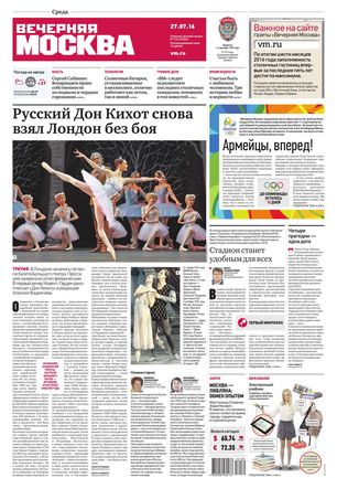 «Вечерняя Москва» — ежедневная российская вечерняя газета, старейшее из вечерних изданий в России, учрежденное в 1923 году. Выходит пять дней в неделю, кроме субботы и воскресенья. Отличается тем, что рассказывает о событиях еще не завершившегося дня. Оперативно освещает хронику и особенности жизни Москвы, охватывает все слои общества и большинство профессиональных и возрастных групп читателей.Издание представлено тремя выпусками – утренним ежедневным, вечерним (выходит три раза в неделю), еженедельным (выходит по четвергам).
