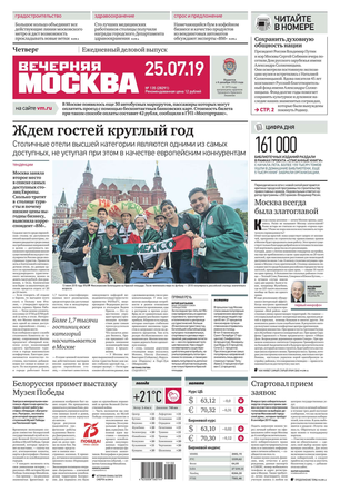 «Вечерняя Москва» — ежедневная российская вечерняя газета, старейшее из вечерних изданий в России, учрежденное в 1923 году. Выходит пять дней в неделю, кроме субботы и воскресенья. Отличается тем, что рассказывает о событиях еще не завершившегося дня. Оперативно освещает хронику и особенности жизни Москвы, охватывает все слои общества и большинство профессиональных и возрастных групп читателей.Издание представлено тремя выпусками – утренним ежедневным, вечерним (выходит три раза в неделю), еженедельным (выходит по четвергам).
