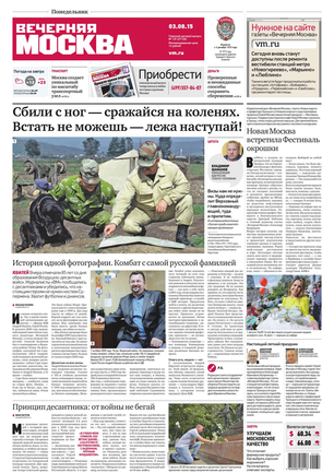 «Вечерняя Москва» — ежедневная российская вечерняя газета, старейшее из вечерних изданий в России, учрежденное в 1923 году. Выходит пять дней в неделю, кроме субботы и воскресенья. Отличается тем, что рассказывает о событиях еще не завершившегося дня. Оперативно освещает хронику и особенности жизни Москвы, охватывает все слои общества и большинство профессиональных и возрастных групп читателей.Издание представлено тремя выпусками – утренним ежедневным, вечерним (выходит три раза в неделю), еженедельным (выходит по четвергам).