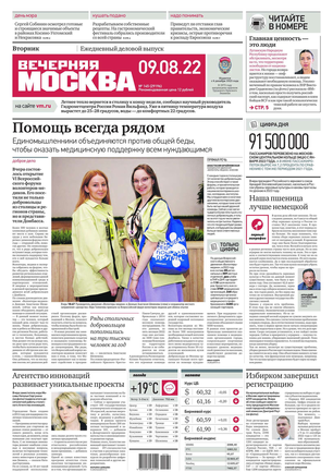 «Вечерняя Москва» — ежедневная российская вечерняя газета, старейшее из вечерних изданий в России, учрежденное в 1923 году. Выходит пять дней в неделю, кроме субботы и воскресенья. Отличается тем, что рассказывает о событиях еще не завершившегося дня. Оперативно освещает хронику и особенности жизни Москвы, охватывает все слои общества и большинство профессиональных и возрастных групп читателей.Издание представлено тремя выпусками – утренним ежедневным, вечерним (выходит три раза в неделю), еженедельным (выходит по четвергам).