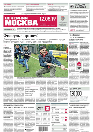 «Вечерняя Москва» — ежедневная российская вечерняя газета, старейшее из вечерних изданий в России, учрежденное в 1923 году. Выходит пять дней в неделю, кроме субботы и воскресенья. Отличается тем, что рассказывает о событиях еще не завершившегося дня. Оперативно освещает хронику и особенности жизни Москвы, охватывает все слои общества и большинство профессиональных и возрастных групп читателей.Издание представлено тремя выпусками – утренним ежедневным, вечерним (выходит три раза в неделю), еженедельным (выходит по четвергам).