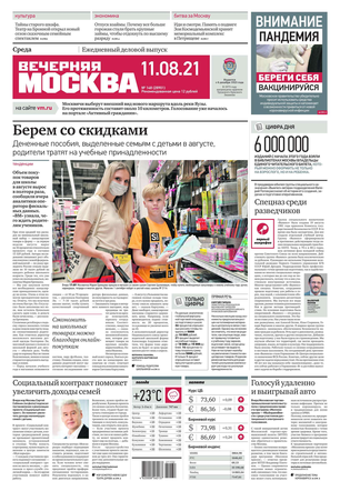 «Вечерняя Москва» — ежедневная российская вечерняя газета, старейшее из вечерних изданий в России, учрежденное в 1923 году. Выходит пять дней в неделю, кроме субботы и воскресенья. Отличается тем, что рассказывает о событиях еще не завершившегося дня. Оперативно освещает хронику и особенности жизни Москвы, охватывает все слои общества и большинство профессиональных и возрастных групп читателей.Издание представлено тремя выпусками – утренним ежедневным, вечерним (выходит три раза в неделю), еженедельным (выходит по четвергам).