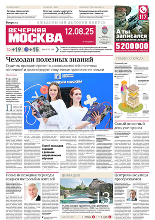 «Вечерняя Москва» — ежедневная российская вечерняя газета, старейшее из вечерних изданий в России, учрежденное в 1923 году. Выходит пять дней в неделю, кроме субботы и воскресенья. Отличается тем, что рассказывает о событиях еще не завершившегося дня. Оперативно освещает хронику и особенности жизни Москвы, охватывает все слои общества и большинство профессиональных и возрастных групп читателей.Издание представлено тремя выпусками – утренним ежедневным, вечерним (выходит три раза в неделю), еженедельным (выходит по четвергам).