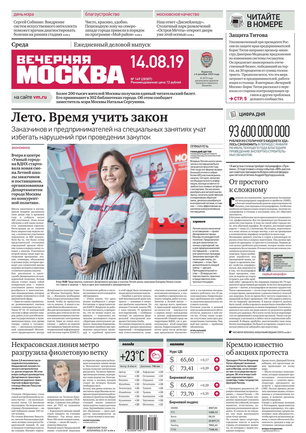 «Вечерняя Москва» — ежедневная российская вечерняя газета, старейшее из вечерних изданий в России, учрежденное в 1923 году. Выходит пять дней в неделю, кроме субботы и воскресенья. Отличается тем, что рассказывает о событиях еще не завершившегося дня. Оперативно освещает хронику и особенности жизни Москвы, охватывает все слои общества и большинство профессиональных и возрастных групп читателей.Издание представлено тремя выпусками – утренним ежедневным, вечерним (выходит три раза в неделю), еженедельным (выходит по четвергам).