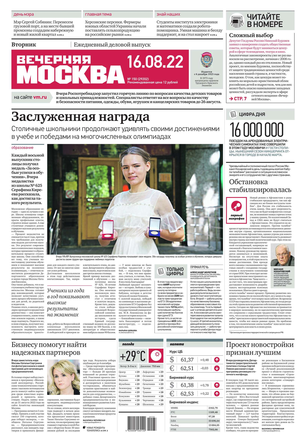 «Вечерняя Москва» — ежедневная российская вечерняя газета, старейшее из вечерних изданий в России, учрежденное в 1923 году. Выходит пять дней в неделю, кроме субботы и воскресенья. Отличается тем, что рассказывает о событиях еще не завершившегося дня. Оперативно освещает хронику и особенности жизни Москвы, охватывает все слои общества и большинство профессиональных и возрастных групп читателей.Издание представлено тремя выпусками – утренним ежедневным, вечерним (выходит три раза в неделю), еженедельным (выходит по четвергам).