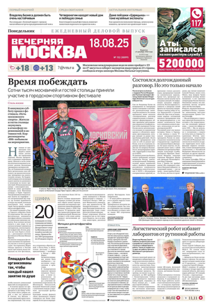 «Вечерняя Москва» — ежедневная российская вечерняя газета, старейшее из вечерних изданий в России, учрежденное в 1923 году. Выходит пять дней в неделю, кроме субботы и воскресенья. Отличается тем, что рассказывает о событиях еще не завершившегося дня. Оперативно освещает хронику и особенности жизни Москвы, охватывает все слои общества и большинство профессиональных и возрастных групп читателей.Издание представлено тремя выпусками – утренним ежедневным, вечерним (выходит три раза в неделю), еженедельным (выходит по четвергам).