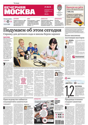 «Вечерняя Москва» — ежедневная российская вечерняя газета, старейшее из вечерних изданий в России, учрежденное в 1923 году. Выходит пять дней в неделю, кроме субботы и воскресенья. Отличается тем, что рассказывает о событиях еще не завершившегося дня. Оперативно освещает хронику и особенности жизни Москвы, охватывает все слои общества и большинство профессиональных и возрастных групп читателей.Издание представлено тремя выпусками – утренним ежедневным, вечерним (выходит три раза в неделю), еженедельным (выходит по четвергам).