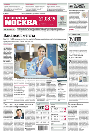«Вечерняя Москва» — ежедневная российская вечерняя газета, старейшее из вечерних изданий в России, учрежденное в 1923 году. Выходит пять дней в неделю, кроме субботы и воскресенья. Отличается тем, что рассказывает о событиях еще не завершившегося дня. Оперативно освещает хронику и особенности жизни Москвы, охватывает все слои общества и большинство профессиональных и возрастных групп читателей.Издание представлено тремя выпусками – утренним ежедневным, вечерним (выходит три раза в неделю), еженедельным (выходит по четвергам).