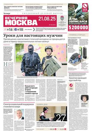 «Вечерняя Москва» — ежедневная российская вечерняя газета, старейшее из вечерних изданий в России, учрежденное в 1923 году. Выходит пять дней в неделю, кроме субботы и воскресенья. Отличается тем, что рассказывает о событиях еще не завершившегося дня. Оперативно освещает хронику и особенности жизни Москвы, охватывает все слои общества и большинство профессиональных и возрастных групп читателей.Издание представлено тремя выпусками – утренним ежедневным, вечерним (выходит три раза в неделю), еженедельным (выходит по четвергам).