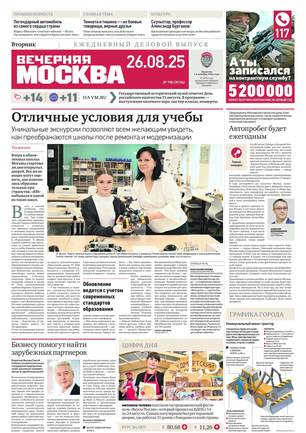 «Вечерняя Москва» — ежедневная российская вечерняя газета, старейшее из вечерних изданий в России, учрежденное в 1923 году. Выходит пять дней в неделю, кроме субботы и воскресенья. Отличается тем, что рассказывает о событиях еще не завершившегося дня. Оперативно освещает хронику и особенности жизни Москвы, охватывает все слои общества и большинство профессиональных и возрастных групп читателей.Издание представлено тремя выпусками – утренним ежедневным, вечерним (выходит три раза в неделю), еженедельным (выходит по четвергам).
