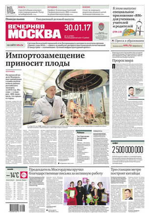 «Вечерняя Москва» — ежедневная российская вечерняя газета, старейшее из вечерних изданий в России, учрежденное в 1923 году. Выходит пять дней в неделю, кроме субботы и воскресенья. Отличается тем, что рассказывает о событиях еще не завершившегося дня. Оперативно освещает хронику и особенности жизни Москвы, охватывает все слои общества и большинство профессиональных и возрастных групп читателей.Издание представлено тремя выпусками – утренним ежедневным, вечерним (выходит три раза в неделю), еженедельным (выходит по четвергам).