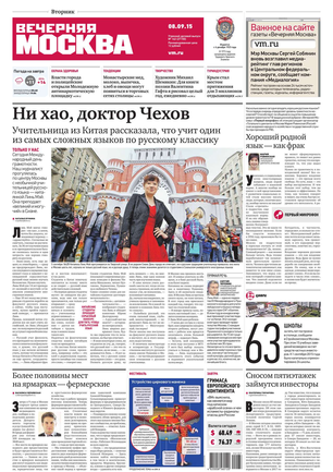 «Вечерняя Москва» — ежедневная российская вечерняя газета, старейшее из вечерних изданий в России, учрежденное в 1923 году. Выходит пять дней в неделю, кроме субботы и воскресенья. Отличается тем, что рассказывает о событиях еще не завершившегося дня. Оперативно освещает хронику и особенности жизни Москвы, охватывает все слои общества и большинство профессиональных и возрастных групп читателей.Издание представлено тремя выпусками – утренним ежедневным, вечерним (выходит три раза в неделю), еженедельным (выходит по четвергам).