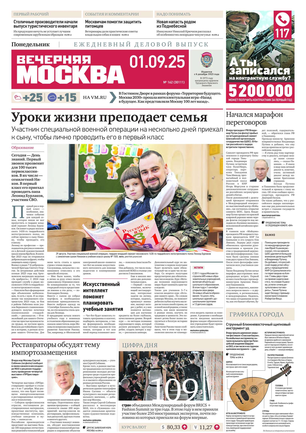 «Вечерняя Москва» — ежедневная российская вечерняя газета, старейшее из вечерних изданий в России, учрежденное в 1923 году. Выходит пять дней в неделю, кроме субботы и воскресенья. Отличается тем, что рассказывает о событиях еще не завершившегося дня. Оперативно освещает хронику и особенности жизни Москвы, охватывает все слои общества и большинство профессиональных и возрастных групп читателей.Издание представлено тремя выпусками – утренним ежедневным, вечерним (выходит три раза в неделю), еженедельным (выходит по четвергам).