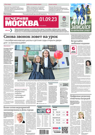 «Вечерняя Москва» — ежедневная российская вечерняя газета, старейшее из вечерних изданий в России, учрежденное в 1923 году. Выходит пять дней в неделю, кроме субботы и воскресенья. Отличается тем, что рассказывает о событиях еще не завершившегося дня. Оперативно освещает хронику и особенности жизни Москвы, охватывает все слои общества и большинство профессиональных и возрастных групп читателей.Издание представлено тремя выпусками – утренним ежедневным, вечерним (выходит три раза в неделю), еженедельным (выходит по четвергам).