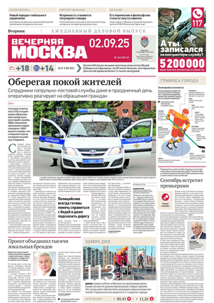 «Вечерняя Москва» — ежедневная российская вечерняя газета, старейшее из вечерних изданий в России, учрежденное в 1923 году. Выходит пять дней в неделю, кроме субботы и воскресенья. Отличается тем, что рассказывает о событиях еще не завершившегося дня. Оперативно освещает хронику и особенности жизни Москвы, охватывает все слои общества и большинство профессиональных и возрастных групп читателей.Издание представлено тремя выпусками – утренним ежедневным, вечерним (выходит три раза в неделю), еженедельным (выходит по четвергам).