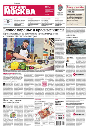 «Вечерняя Москва» — ежедневная российская вечерняя газета, старейшее из вечерних изданий в России, учрежденное в 1923 году. Выходит пять дней в неделю, кроме субботы и воскресенья. Отличается тем, что рассказывает о событиях еще не завершившегося дня. Оперативно освещает хронику и особенности жизни Москвы, охватывает все слои общества и большинство профессиональных и возрастных групп читателей.Издание представлено тремя выпусками – утренним ежедневным, вечерним (выходит три раза в неделю), еженедельным (выходит по четвергам).