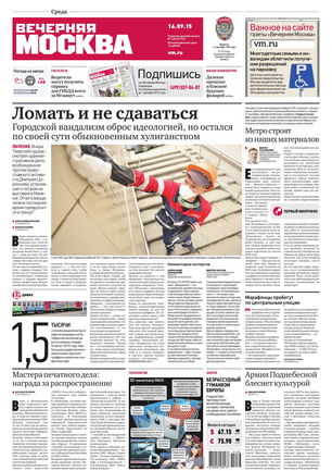 «Вечерняя Москва» — ежедневная российская вечерняя газета, старейшее из вечерних изданий в России, учрежденное в 1923 году. Выходит пять дней в неделю, кроме субботы и воскресенья. Отличается тем, что рассказывает о событиях еще не завершившегося дня. Оперативно освещает хронику и особенности жизни Москвы, охватывает все слои общества и большинство профессиональных и возрастных групп читателей.Издание представлено тремя выпусками – утренним ежедневным, вечерним (выходит три раза в неделю), еженедельным (выходит по четвергам).