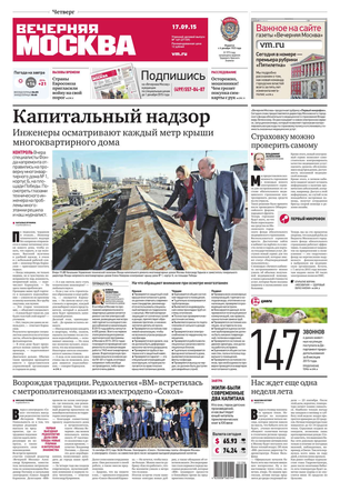 «Вечерняя Москва» — ежедневная российская вечерняя газета, старейшее из вечерних изданий в России, учрежденное в 1923 году. Выходит пять дней в неделю, кроме субботы и воскресенья. Отличается тем, что рассказывает о событиях еще не завершившегося дня. Оперативно освещает хронику и особенности жизни Москвы, охватывает все слои общества и большинство профессиональных и возрастных групп читателей.Издание представлено тремя выпусками – утренним ежедневным, вечерним (выходит три раза в неделю), еженедельным (выходит по четвергам).