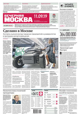 «Вечерняя Москва» — ежедневная российская вечерняя газета, старейшее из вечерних изданий в России, учрежденное в 1923 году. Выходит пять дней в неделю, кроме субботы и воскресенья. Отличается тем, что рассказывает о событиях еще не завершившегося дня. Оперативно освещает хронику и особенности жизни Москвы, охватывает все слои общества и большинство профессиональных и возрастных групп читателей.Издание представлено тремя выпусками – утренним ежедневным, вечерним (выходит три раза в неделю), еженедельным (выходит по четвергам).