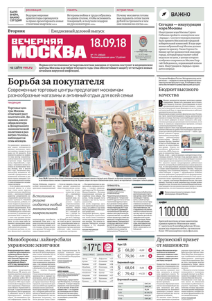 «Вечерняя Москва» — ежедневная российская вечерняя газета, старейшее из вечерних изданий в России, учрежденное в 1923 году. Выходит пять дней в неделю, кроме субботы и воскресенья. Отличается тем, что рассказывает о событиях еще не завершившегося дня. Оперативно освещает хронику и особенности жизни Москвы, охватывает все слои общества и большинство профессиональных и возрастных групп читателей.Издание представлено тремя выпусками – утренним ежедневным, вечерним (выходит три раза в неделю), еженедельным (выходит по четвергам).