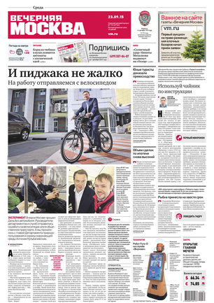«Вечерняя Москва» — ежедневная российская вечерняя газета, старейшее из вечерних изданий в России, учрежденное в 1923 году. Выходит пять дней в неделю, кроме субботы и воскресенья. Отличается тем, что рассказывает о событиях еще не завершившегося дня. Оперативно освещает хронику и особенности жизни Москвы, охватывает все слои общества и большинство профессиональных и возрастных групп читателей.Издание представлено тремя выпусками – утренним ежедневным, вечерним (выходит три раза в неделю), еженедельным (выходит по четвергам).