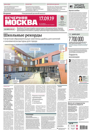 «Вечерняя Москва» — ежедневная российская вечерняя газета, старейшее из вечерних изданий в России, учрежденное в 1923 году. Выходит пять дней в неделю, кроме субботы и воскресенья. Отличается тем, что рассказывает о событиях еще не завершившегося дня. Оперативно освещает хронику и особенности жизни Москвы, охватывает все слои общества и большинство профессиональных и возрастных групп читателей.Издание представлено тремя выпусками – утренним ежедневным, вечерним (выходит три раза в неделю), еженедельным (выходит по четвергам).