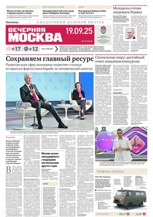 «Вечерняя Москва» — ежедневная российская вечерняя газета, старейшее из вечерних изданий в России, учрежденное в 1923 году. Выходит пять дней в неделю, кроме субботы и воскресенья. Отличается тем, что рассказывает о событиях еще не завершившегося дня. Оперативно освещает хронику и особенности жизни Москвы, охватывает все слои общества и большинство профессиональных и возрастных групп читателей.Издание представлено тремя выпусками – утренним ежедневным, вечерним (выходит три раза в неделю), еженедельным (выходит по четвергам).