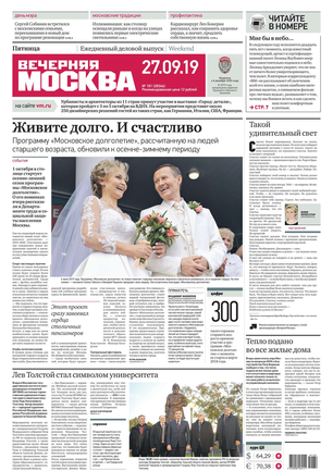 «Вечерняя Москва» — ежедневная российская вечерняя газета, старейшее из вечерних изданий в России, учрежденное в 1923 году. Выходит пять дней в неделю, кроме субботы и воскресенья. Отличается тем, что рассказывает о событиях еще не завершившегося дня. Оперативно освещает хронику и особенности жизни Москвы, охватывает все слои общества и большинство профессиональных и возрастных групп читателей.Издание представлено тремя выпусками – утренним ежедневным, вечерним (выходит три раза в неделю), еженедельным (выходит по четвергам).