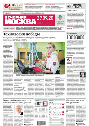 «Вечерняя Москва» — ежедневная российская вечерняя газета, старейшее из вечерних изданий в России, учрежденное в 1923 году. Выходит пять дней в неделю, кроме субботы и воскресенья. Отличается тем, что рассказывает о событиях еще не завершившегося дня. Оперативно освещает хронику и особенности жизни Москвы, охватывает все слои общества и большинство профессиональных и возрастных групп читателей.Издание представлено тремя выпусками – утренним ежедневным, вечерним (выходит три раза в неделю), еженедельным (выходит по четвергам).