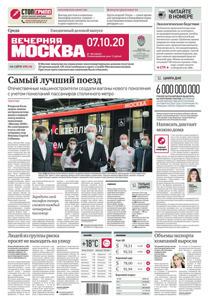 «Вечерняя Москва» — ежедневная российская вечерняя газета, старейшее из вечерних изданий в России, учрежденное в 1923 году. Выходит пять дней в неделю, кроме субботы и воскресенья. Отличается тем, что рассказывает о событиях еще не завершившегося дня. Оперативно освещает хронику и особенности жизни Москвы, охватывает все слои общества и большинство профессиональных и возрастных групп читателей.Издание представлено тремя выпусками – утренним ежедневным, вечерним (выходит три раза в неделю), еженедельным (выходит по четвергам).
