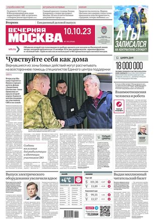 «Вечерняя Москва» — ежедневная российская вечерняя газета, старейшее из вечерних изданий в России, учрежденное в 1923 году. Выходит пять дней в неделю, кроме субботы и воскресенья. Отличается тем, что рассказывает о событиях еще не завершившегося дня. Оперативно освещает хронику и особенности жизни Москвы, охватывает все слои общества и большинство профессиональных и возрастных групп читателей.Издание представлено тремя выпусками – утренним ежедневным, вечерним (выходит три раза в неделю), еженедельным (выходит по четвергам).